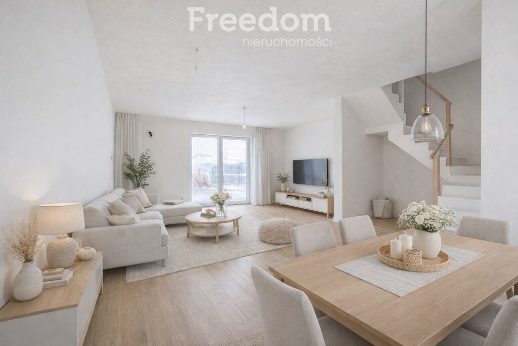 Na parterze znajduje się przestronny, jasny salon z aneksem