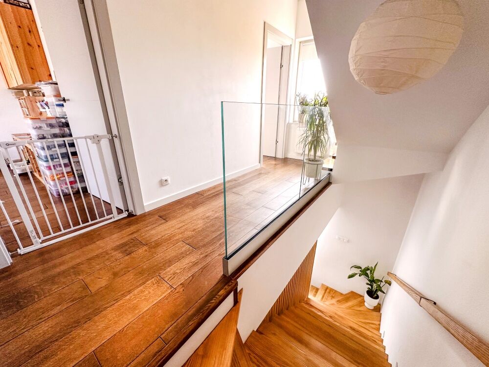 • stylowe schody z drewnem, szkłem i lamelami - designerski detal, który robi efekt "wow",